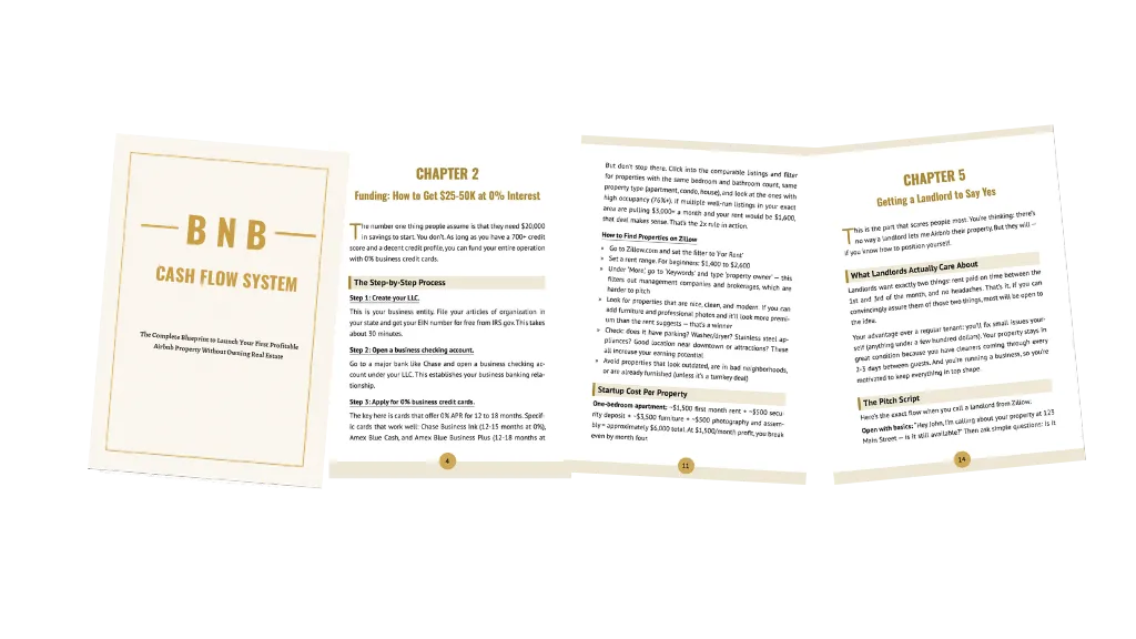 This covers everything you need to go from zero to your first profitable property. You're not getting a watered-down preview — it's the complete system. Advanced scaling (going from 1 property to 10+) can come later, but this foundation is what separates the people who actually launch from the thousands who are still "researching."
